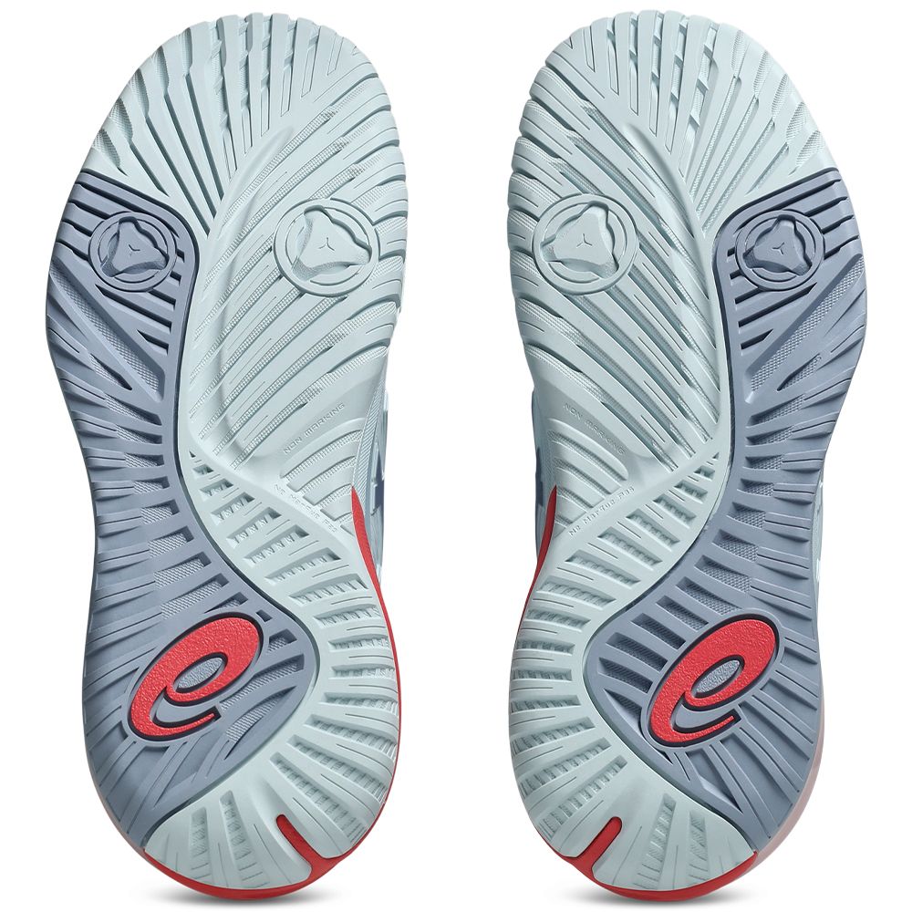 Côté amorti, l’association du FlyteFoam et du Blast+ Eco Foam (composé à environ 24 % de matériaux biosourcés) assure une absorption efficace des chocs, tout en offrant un confort durable. Les unités Gel, stratégiquement placées à l’avant et à l’arrière du pied, viennent compléter l’amorti pour une redistribution optimale de l’énergie à chaque pas.