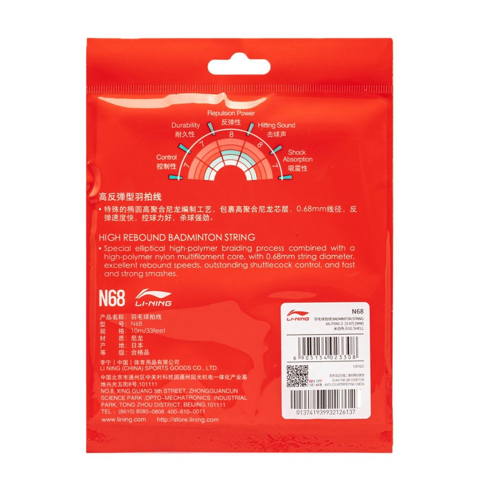 D'une jauge de 0.68 millimètres, ce cordage Li-Ning offre un compromis idéal entre confort, contrôle et durabilité. Sa tension de frappe permet des échanges rapides et précis, tout en réduisant les vibrations ressenties au poignet et au bras.