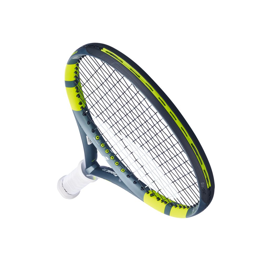 Techniquement, elle affiche un poids de 250 grammes et un tamis de 645 cm², offrant un excellent compromis entre maniabilité et tolérance. Son cadre en graphite possède une rigidité de 65 RA, assurant une bonne restitution d'énergie tout en restant adapté à la morphologie des jeunes athlètes. Son plan de cordage 16/19 favorise l'accroche de la balle, permettant de générer les trajectoires bombées caractéristiques de la gamme Aero.