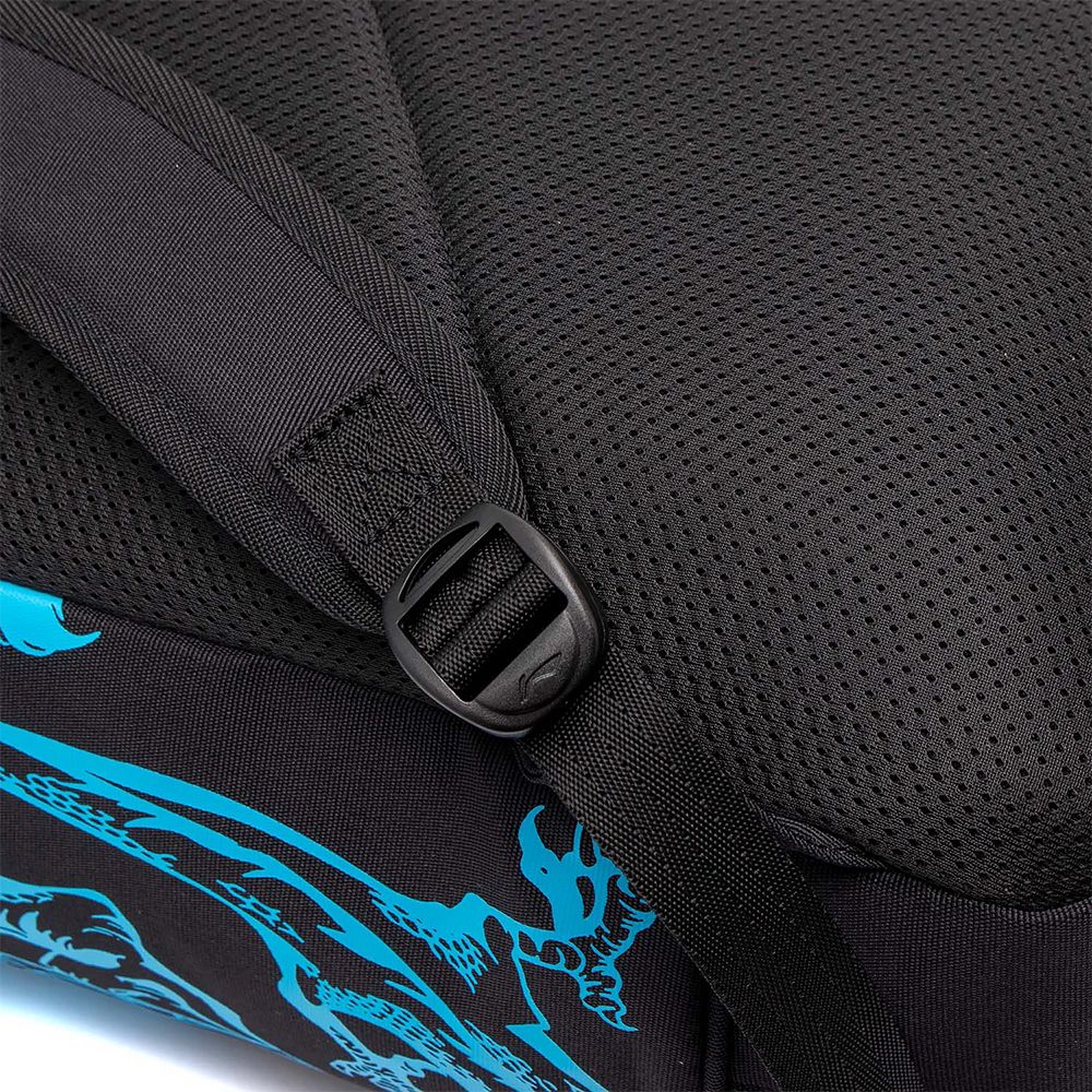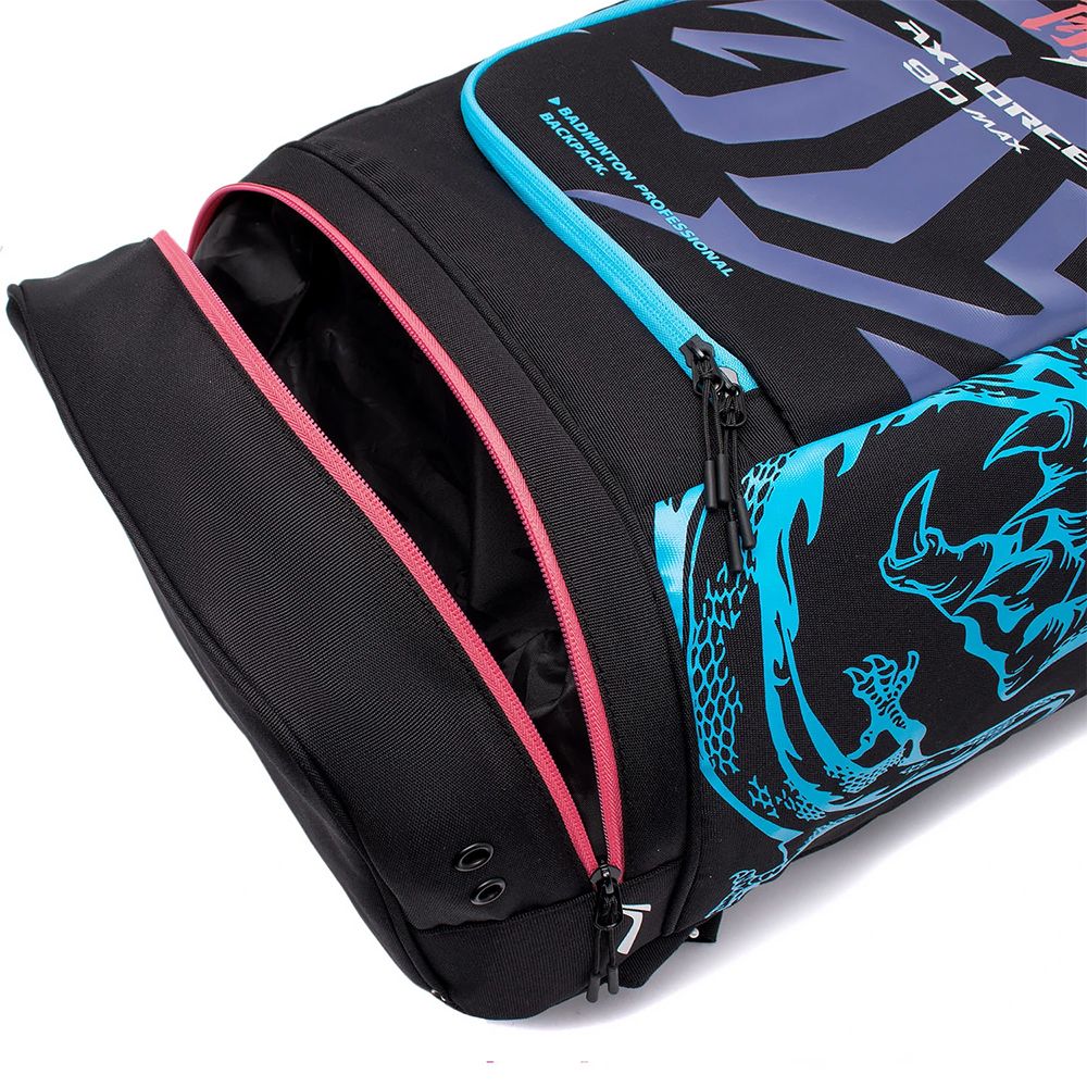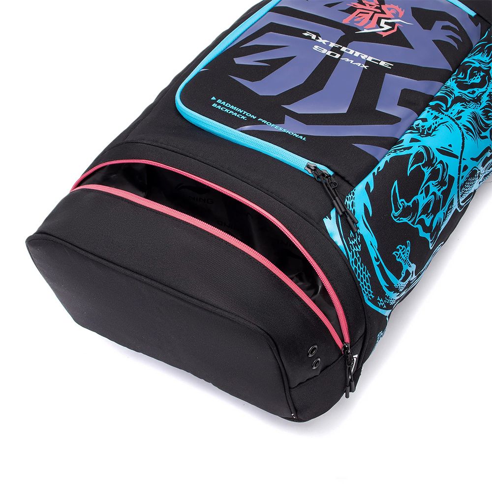 Côté design, le sac Li-Ning ABSS285 vient rappeler la raquette Li-Ning Axforce 90 Max Dragon. Sur une base noire, il mêle rouge pâle et bleu. Sur le côté gauche, un dragon vient rappeler l'esprit de la Axforce 90 Max. Ce sac à dos existe également dans sa version ABSS285 Axforce 90 Tiger Edition.