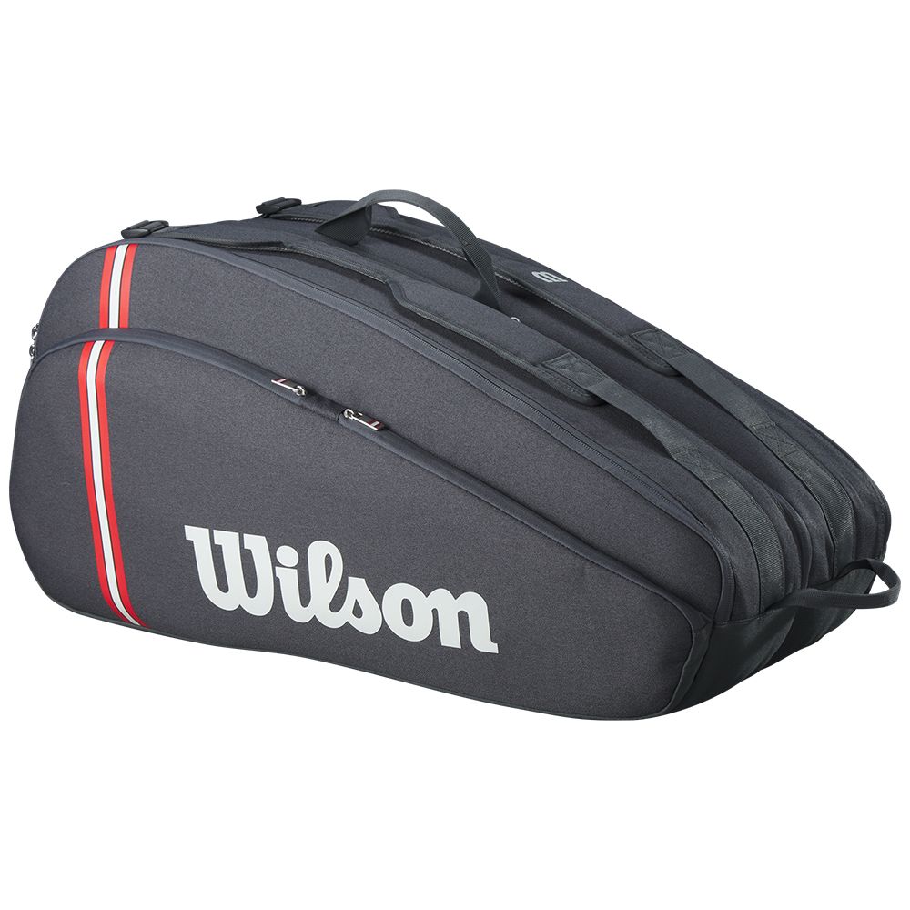 Pour une praticité maximale, optez pour le Sac Wilson Tour Black x12, conçu pour accueillir l'ensemble de votre matériel ainsi que toute votre panoplie de raquettes.