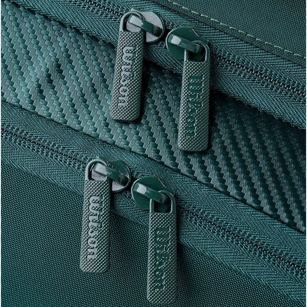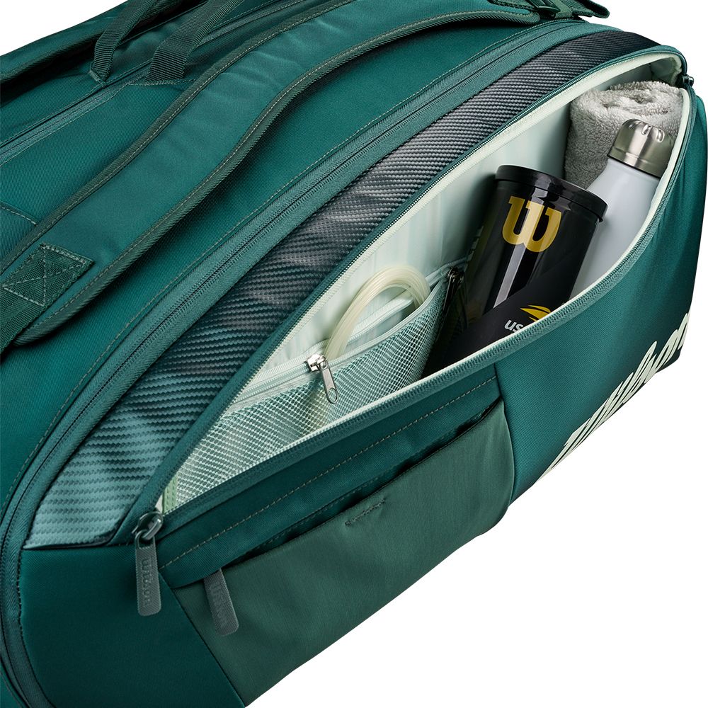 Pour une plus grande praticité, Wilson a intégrée deux poches zippées supplémentaires, larges, vous permettant d'organiser à merveilles vos accessoires indispensables pour la compétition ou l'entraînement, notamment grâce à la poche filet inclue dedans. Enfin, une petite poche supplémentaire et zippée est positionnée à l'avant afin d'y insérer vos effets personnels ou autre accessoire. Côté transport, le Super Tour Blade V10 x15 dispose d'une double poignet de part et d'autre du compartiment centrale, mais également de deux grandes bandoulières. Ajustables et rembourrées, ces dernières vous permettront de transport votre sac avec un confort optimal.