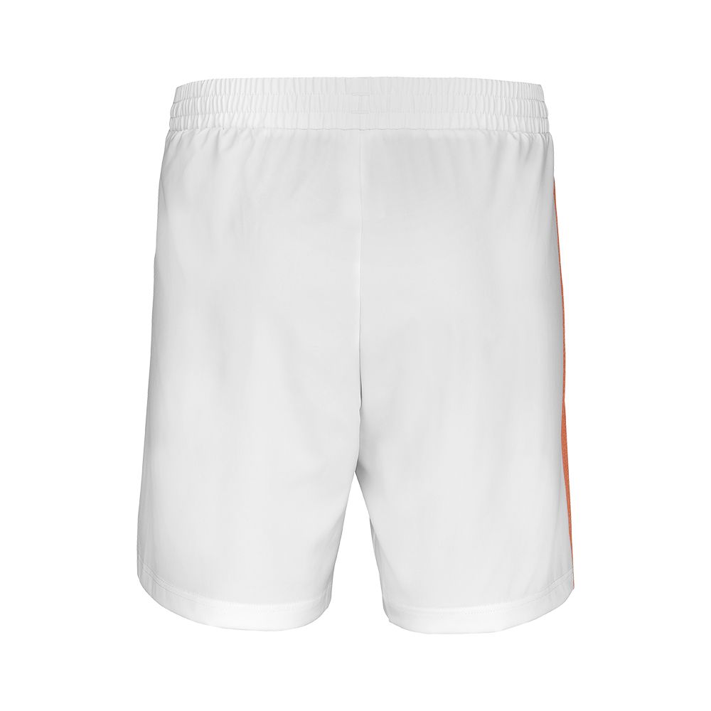 Blanc avec une touche d'orange pour plus de dynamisme, ce short intègre deux poches latérales afin d'y ranger ce dont il aura besoin sur le terrain. Enfin, il arbore le logo de la marque en bas de la jambe droite, discret.