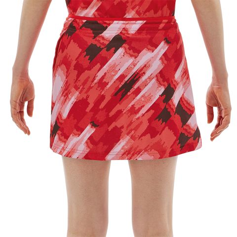 Démarquez-vous sur le court avec la Jupe Yonex Tour Elite 26130EX Femme Orange au design dynamique avec un motif abstrait rouge orangé, accentué par des touches de noir.