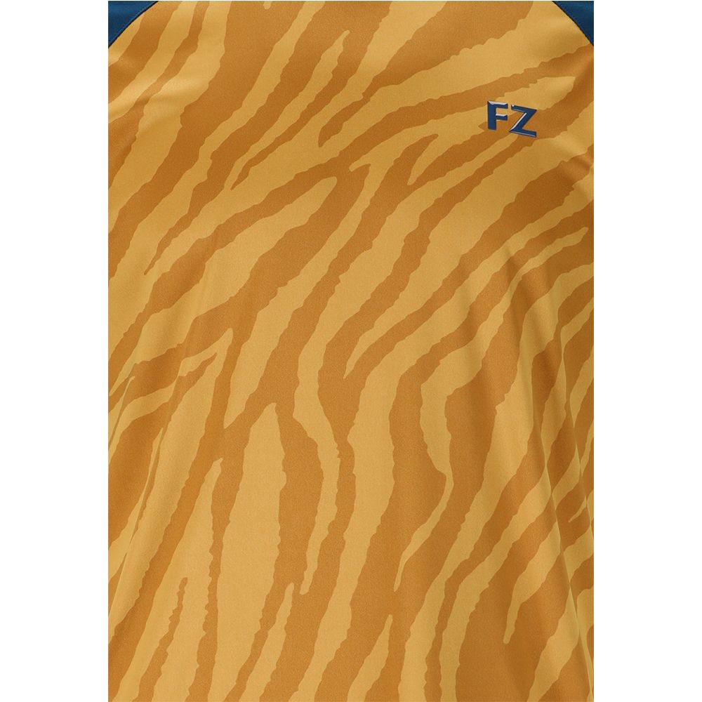 Côté design, ce tee-shirt présente un coloris jaune et bleu marine avec des motifs zébrés ainsi qu'un logo Forza en relief situé sur la poitrine gauche.