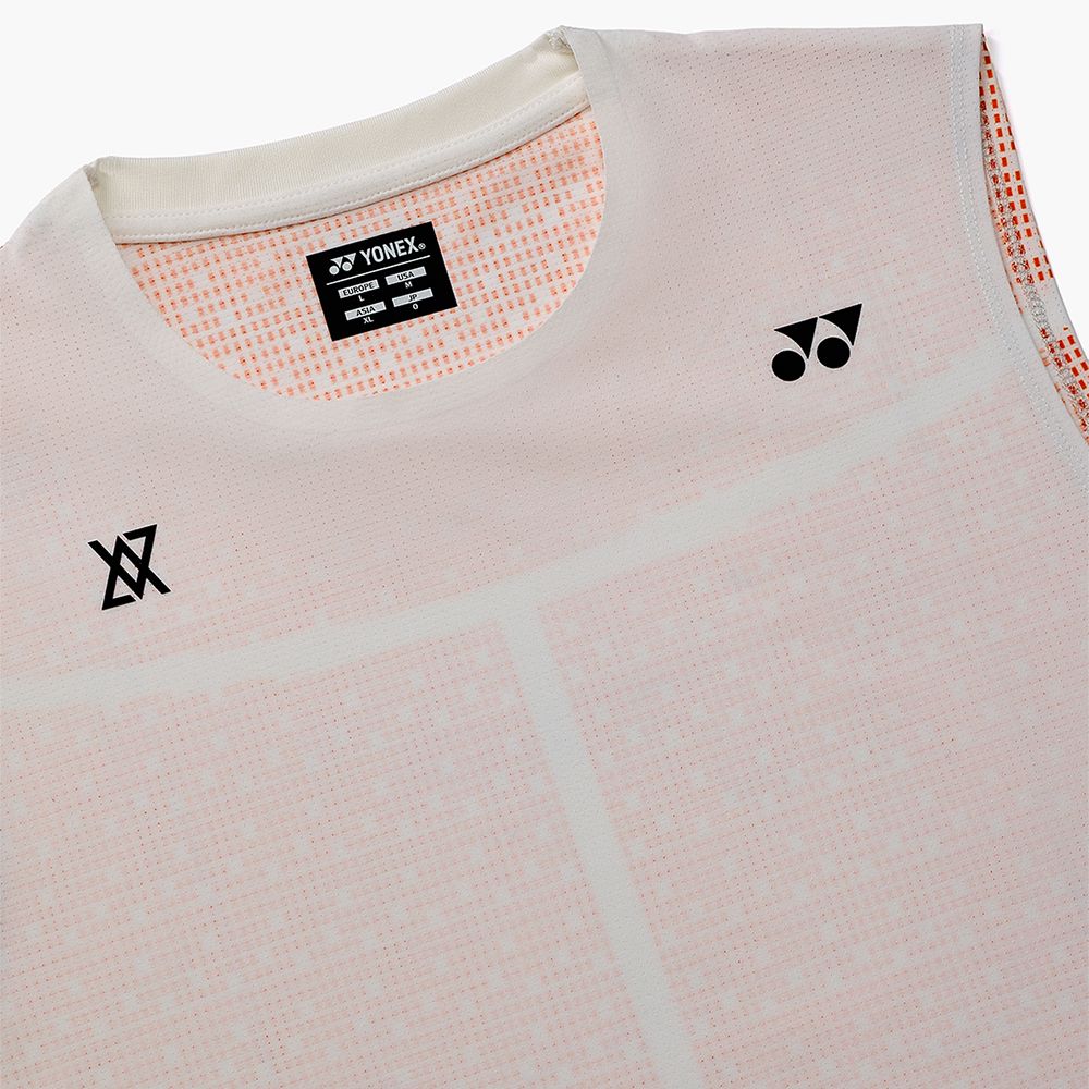 Arborant en poitrine le logo de la marque japonaise ainsi que celui du double champion olympique Viktor Axelsen, il arbore en son dos un motif orangé apportant ainsi du dynamisme au vêtement.